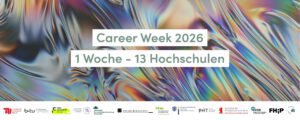 Vom 23. bis 27. Februar 2026 findet zum dritten Mal die Career Week der Berliner und Brandenburger Hochschulen und Universitäten statt. Mit dieser Themenwoche bietet sich die Chance, die vielfältigen Angebote der Career Services in Berlin und Brandenburg kennenzulernen. Studierende und Absolvent*innen aller teilnehmenden Hochschulen sind eingeladen, sich eine Woche lang intensiv mit beruflichen Perspektiven auseinanderzusetzen und für den Berufseinstieg fit zu machen.